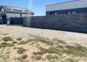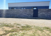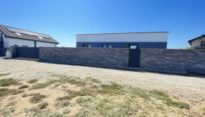 Na pozemku je elektrina, obecná voda, optika a žumpa. Posuvná elektrická brána pre vjazd s autom a bránička pre peších. Prístupová cesta pred pozemkom je vysypaná štrkom. Úžitková plocha domu je 125m2 a jedná sa o 4i bungalov v tvare "U".