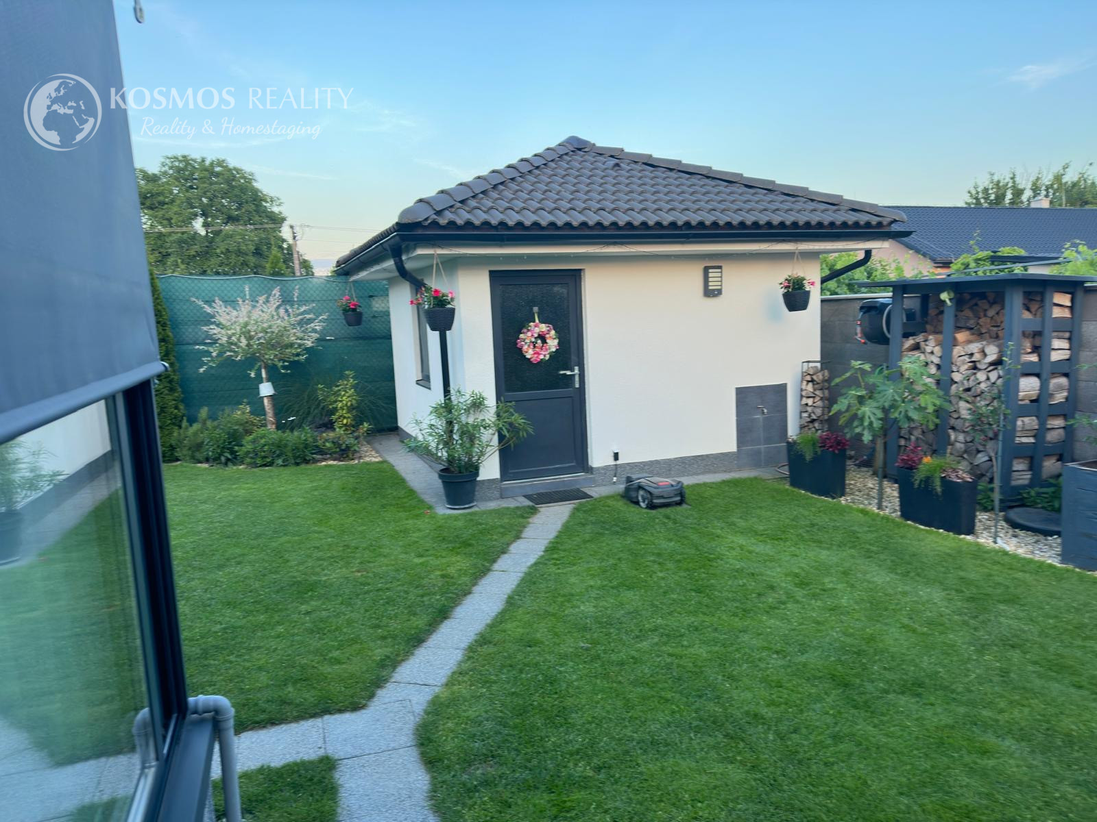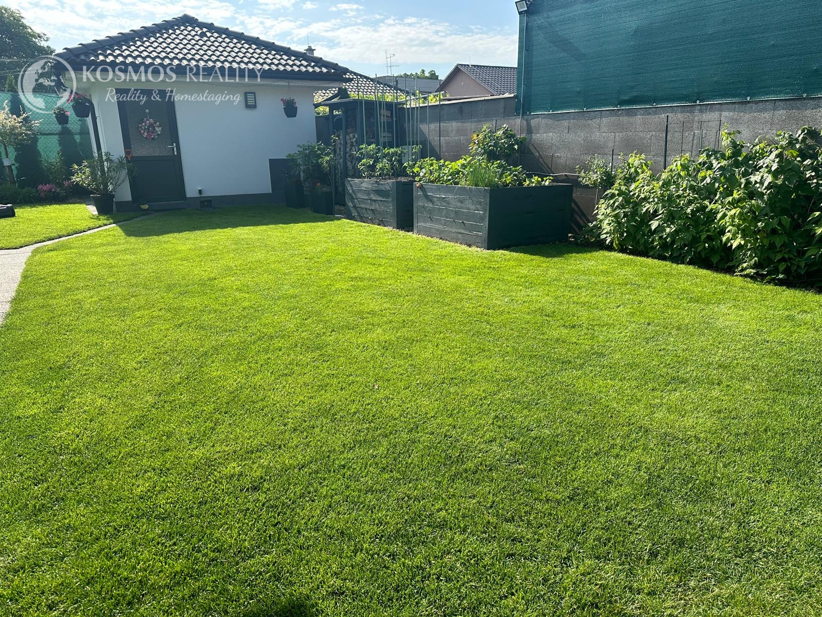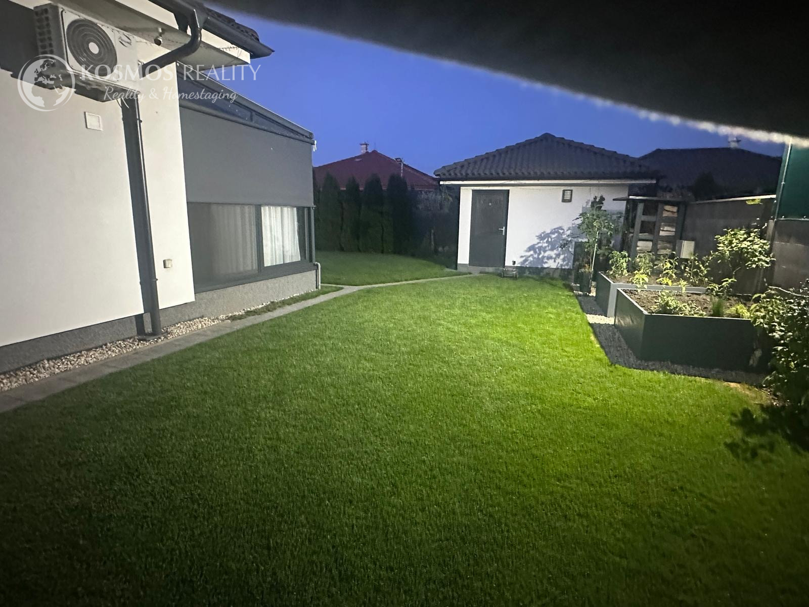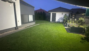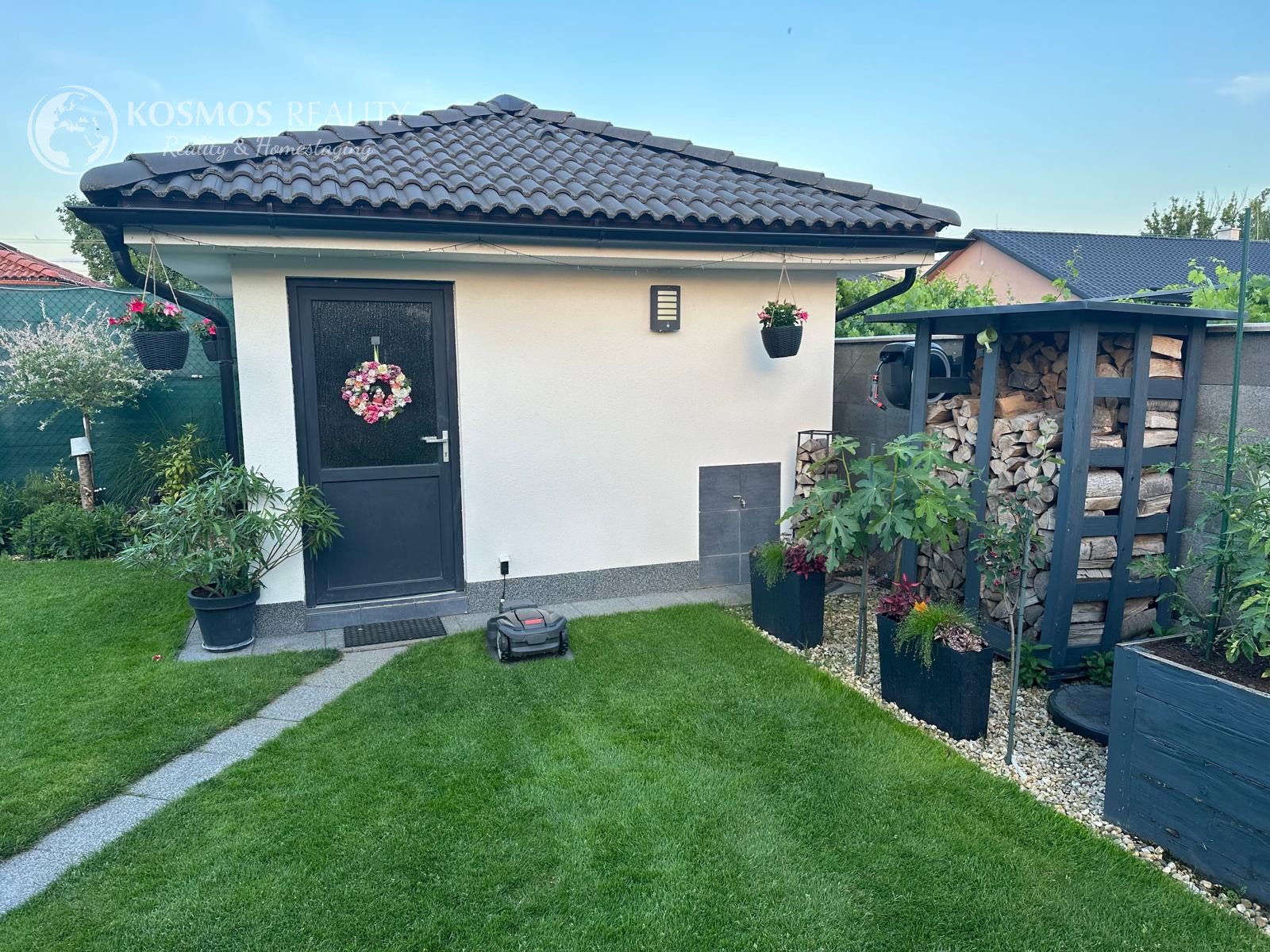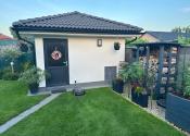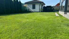 Pozemok je napojený na automatickú závlahu a má 13 okruhov. V cene je aj automatická elektrická kosačka trávnika. Na pozemku sa ešte nachádza aj záhradný domček ktorý je kópiou dizajnu domu s úložným priestorom a napojenou vodou.