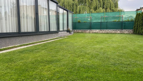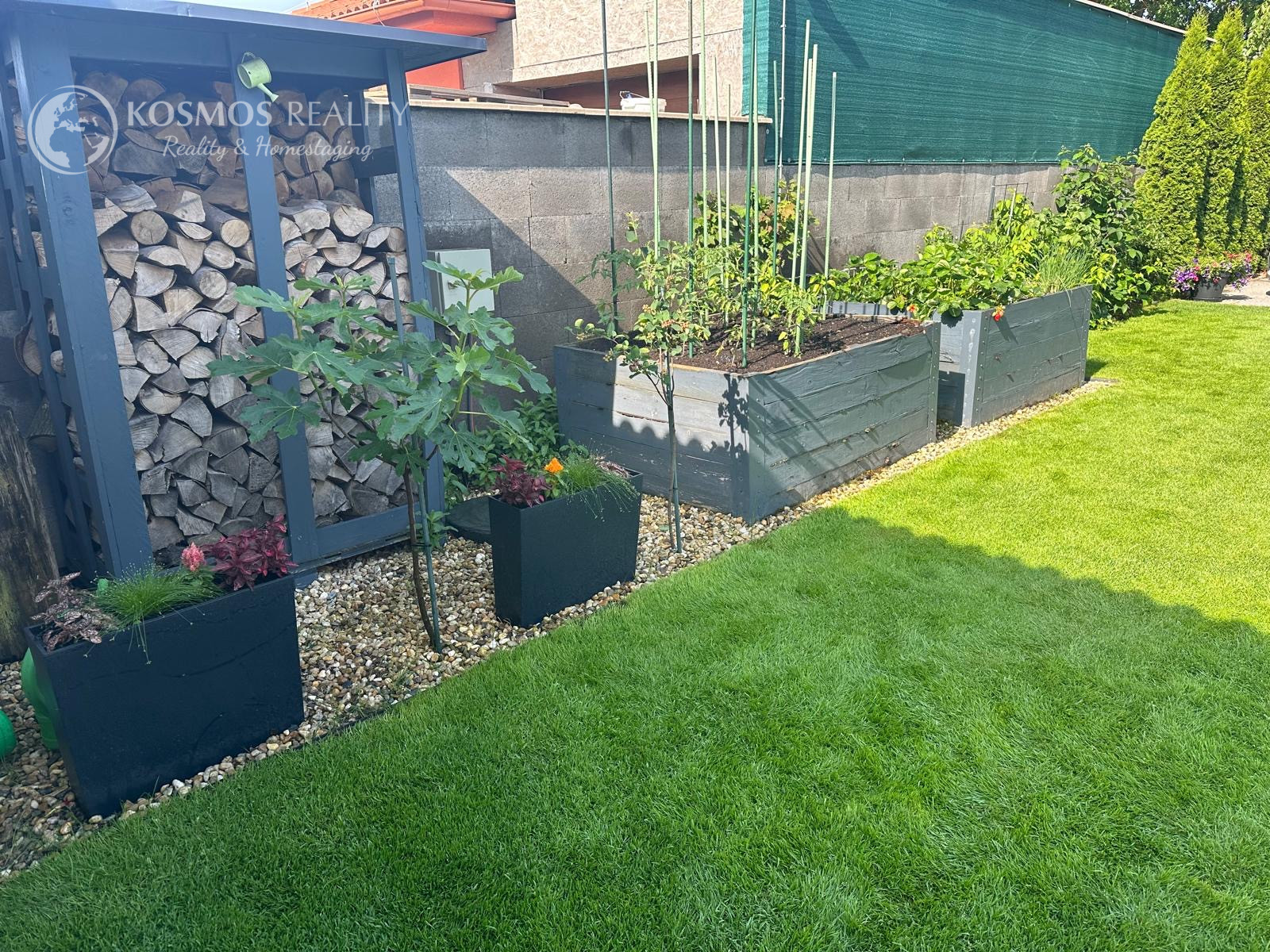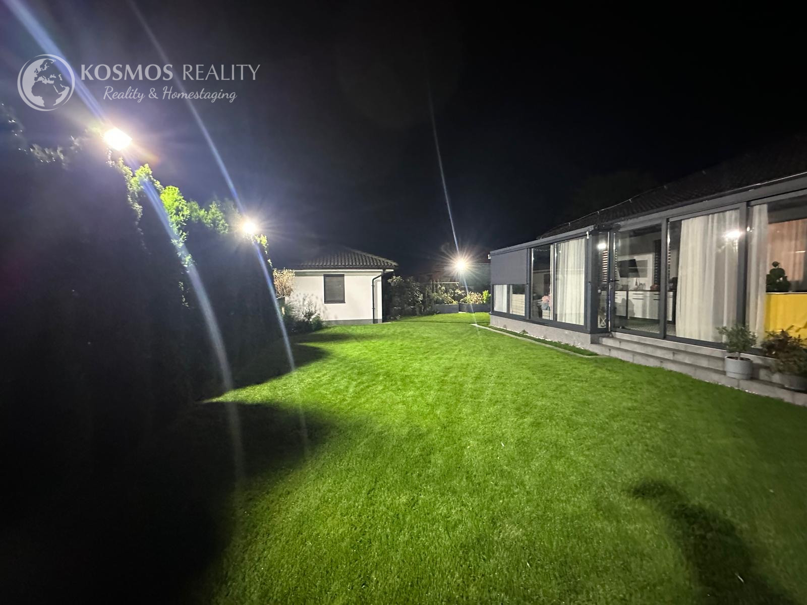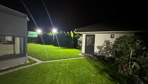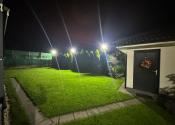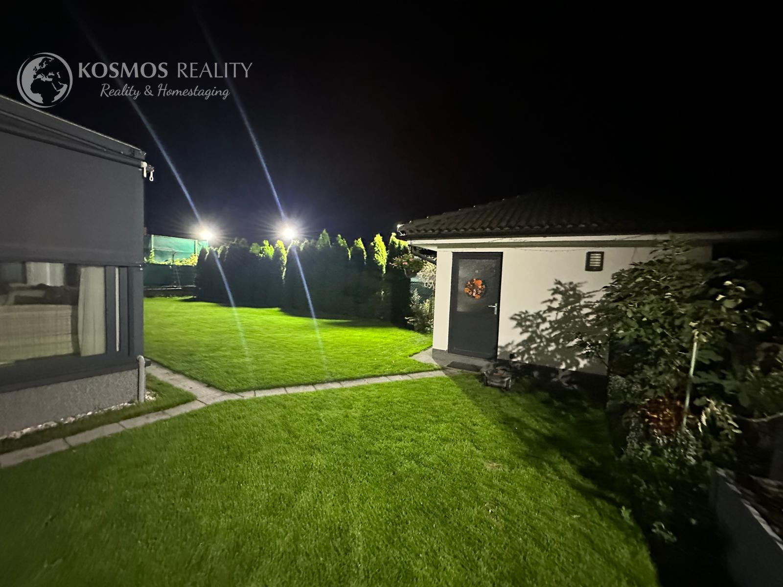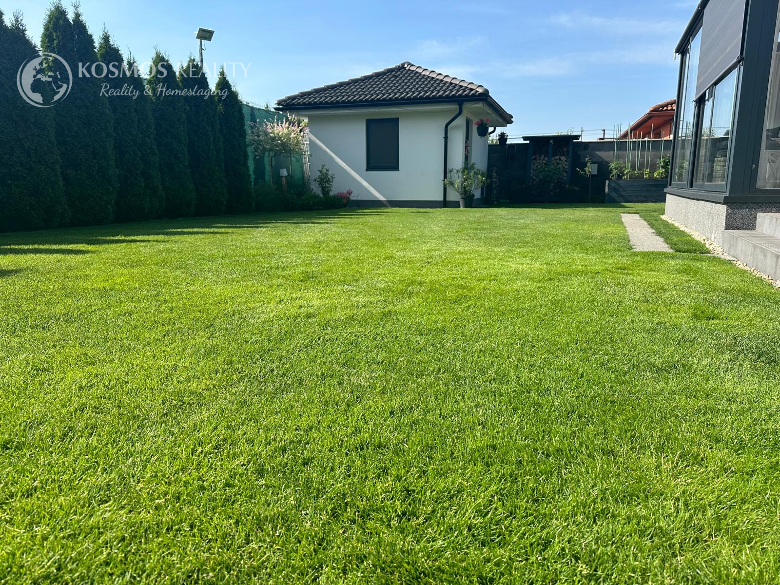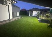 Pozemok je napojený na automatickú závlahu a má 13 okruhov. V cene je aj automatická elektrická kosačka trávnika. Na pozemku sa ešte nachádza aj záhradný domček ktorý je kópiou dizajnu domu s úložným priestorom a napojenou vodou.