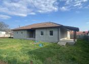 Väčší dom - 110 m2 - 3 x samostatná izba, kuchyňa s obývačkou, kúpeľňa s WC a technická miestnosť.